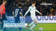 RULLI 5<br />Après sa semaine royale, du Real Madrid au PSG, le portier argentin a eu moins de succès. Battu sur le but refusé pour hors-jeu à Emegha (17), il a aussi cédé sur le contre alsacien conclu par Ouattara après validation de la VAR (50).<br />MURILLO 6,5<br />Le Panaméen a été mis à mal par la vivacité de Moreira, à l'image de l'avertissement reçu pour une faute sur le feu follet strasbourgeois (26), mais il s'est battu jusqu'au bout. Il aurait pu être passeur décisif pour Gouiri (54) et s'est vengé sur la fin en inscrivant, du gauche, le but de la victoire (90+1).<br />BALERDI 3,5<br />Le capitaine olympien s'est surtout signalé en première période dans le camp alsacien, avec un tir de 45m (13) et un centre depuis le côté droit (37). Averti pour un accrochage sur Emegha (45), il a surtout manqué (encore une fois) son alignement sur le but de Ouattara (49).<br />AGUERD 6<br />L'entame de match a été difficile pour le Marocain. Mis sous pression par Emegha, il a rapidement été sanctionné d'un carton jaune (24) pour une faute sur le Néerlandais, qui lui a aussi mis les doigts dans les yeux (47). Précieux pour sauver un ballon chaud devant Panichelli (68).<br />MEDINA 5<br />L'Argentin a passé son début de soirée à surveiller Paez, mais on l'a aussi vu couper un centre de Moreira (25) et gratter un ballon dans les pieds d'Emegha (32). Positionné dans l'axe gauche de la défense à trois, il a tenté de compenser et de stimuler ses partenaires.<br />O'Riley 5<br />De Zerbi avait beaucoup aimé son association avec Hojbjerg dans le double-pivot, lors du Clasico. Le Lombard en a donc redemandé. L'expérience a été moins concluante. Le joueur prêté par Brighton a encore beaucoup couru, mais cette fois derrière les flèches alsaciennes. Remplacé par Pavard (85).<br />Hojbjerg 6<br />Moins impactant que face à Paris, où il avait retrouvé un excellent niveau, le Danois a quand même été le meilleur milieu à la Meinau, côté OM. Présent à la récupération, il a aussi été habile pour ressortir le ballon. Une ouverture splendide pour Paixao (36) et une balle de but pour "Auba" (78).<br />Weah 5<br />Dans un rôle plus ou moins similaire à celui qu'il a tenu à Madrid, dans le couloir gauche, l'Américain n'a pas eu autant d'espaces qu'au Bernabeu. Il n'a pas compté ses efforts et a même failli tromper Mike Penders sur une frappe vicieuse et détournée (8). Remplacé par Emerson (58).<br />Paixao 3<br />Dans la lignée du Clasico, le Brésilien, cette fois aligné côté droit, a paru très emprunté. Laborieux avec le ballon, guère tranchant quand il courait, il a au moins eu le mérite de défendre. À son actif, deux frappes. L'une lourde (41), l'autre imprécise (54). Remplacé par Greenwood (58).