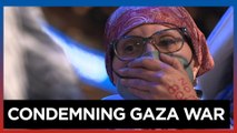 Democrat delegates cover mouths in Gaza protest during Biden speech