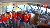 Gli attivisti della Flotilla scendono con le mani alzate dopo abbordaggio soldati israeliani