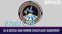 On Oct. 6, 1992, the United States and Russia signed an agreement to share astronauts and cosmonauts.<br /><br />Known as the Agreement on Human Spaceflight Cooperation, this plan laid out the details for the joint Shuttle-Mir Program. Under this program, NASA's space shuttles would fly to Russia's Mir space station and carry Russian cosmonauts on board. Meanwhile, American astronauts started flying in the Russian Soyuz spacecraft, which still carries international crews to the International Space Station to this day.
