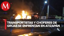 En Atizapán, choferes de grúas se enfrentan con transportistas
