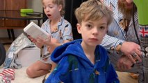 Christmas morning surprise turns into pure excitement as two kids unwrap iPhones