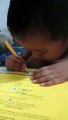 Anak kardus lagi belajar nulis