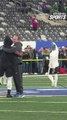 Saquon Barkley daps up Mike Kafka and other Giants coaches during warmups