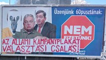 Hungary election: Man 'corrects' government campaign posters