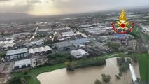 Maltempo Toscana, alluvione a Prato: elicottero dei vigili del fuoco sorvola la zona