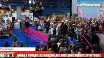 Pour son grand retour en France, Amma, Mata Amritanandamayi de son vrai nom, installe un véritable temple à ciel ouvert jusqu’au 31 octobre. Objectif, pour les 5 000 visiteurs quotidiens attendus : recevoir un darshan de 10 secondes, donné après une journée d’attente. Reportage.