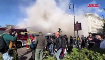 Le immagini del secondo crollo della Torre dei Conti in centro a Roma, gente evacuataÈ avvenuto poco prima delle 13:00, dopo un'ora dal primo crollo. Il nuovo cedimento ha generato un'enorme colonna di fumo e la paura delle persone che erano accorse