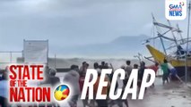 Luzon, Visayas, Mindanao, apektado ng Super Bagyong Uwan. Lubhang nilatay ng bagyo ang Luzon —mula Bicol hanggang sa Norte. Hindi lang baha at malakas na hangin ang naminsala, pati daluyong o storm surge. Wasak ang maraming estruktura,naputol ang kuryente, nabuwal ang mga puno, at may mga nasawi. May report si Darlene Cay.<br /><br /><br />State of the Nation is a nightly newscast anchored by Atom Araullo. It airs Mondays to Fridays at 11:05 PM (PHL Time) on GTV. For more videos from State of the Nation, visit http://www.gmanews.tv/stateofthenation.<br /><br />#GMAIntegratedNews #GMANetwork #KapusoStream #BreakingNews<br /><br />Breaking news and stories from the Philippines and abroad:<br />GMA Integrated News Portal: http://www.gmanews.tv<br />Facebook: http://www.facebook.com/gmanews<br />TikTok: https://www.tiktok.com/@gmanews<br />Twitter: http://www.twitter.com/gmanews<br />Instagram: http://www.instagram.com/gmanews<br /><br />GMA Network Kapuso programs on GMA Pinoy TV: https://gmapinoytv.com/subscribe