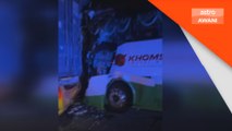 Seorang pemandu maut selepas lori kontena terbabas dan terbakar di Kilometer 254 Lebuhraya PLUS arah utara, awal pagi tadi.