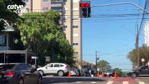 Acidente entre moto e carro de aplicativo deixa dois feridos e gera confusão em Cascavel