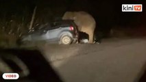Gajah mengamuk pijak kereta, lima individu selamat