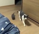 Mother Cat Brings Her Two Kittens to a Door Seeking Help in the Rain