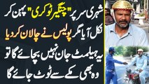 Shehri Sir Par Helmet Ki Jagah Changer Tokri Pehan Kar Nikal Aaya Magar Police Ne Challan Kar Dia