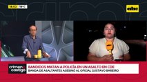 Un comerciante del rubro de joyería fue asesinado de un balazo por dos motoasaltantes, en una vivienda ubicada en el barrio San José de CDE. Tras una persecución se logro la detención de dos personas. Nos brinda mas detalles el comisario Bernardo Ojeda. ‘’Todo apunta a la vestimenta de que corresponderían a los supuestos autores del homicidio en Ciudad del este’’ expresó el comisario.