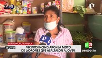 Lurigancho-Chosica: vecinos incendiaron la moto de ladrones que que asaltaron a joven