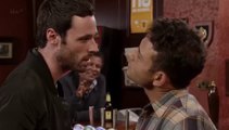 Callum meets up with Katy in the Rovers. Spotting David he asks him when he can next see Max. David tells him never.