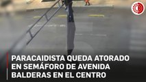 Un paracaidista estadounidense se atoró en un semáforo durante la madrugada en el cruce entre avenida Juárez y Balderas, en la #CDMX. Al aterrizar, el hombre fue detenido, pero más tarde fue puesto en libertad al no existir falta administrativa ni haber provocado daños.<br /><br />#NoticiasConNachoLozano<br /><br />