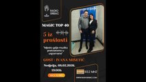 U ovom izdanju rubrike „Pet iz prošlosti“ vraćamo se u muziku koja je oblikovala čitavu jednu generaciju – kada je dens tresao klubove a hitovi se presnimavali na kasete.<br /><br />Naš gost biće Andrija Đogani – Baki B3, jedan od najprepoznatljivijih izvođača dens scene čije su pjesme obilježile devedesete.<br /><br />Od prvih plesnih koraka u školi Đogani Fantastiko, preko hitova "Olovna ruka", „5 minuta“, "Mrak", pa sve do aktuelnih nastupa širom regiona i pripreme novog albuma, Baki će sa nama iskreno govoriti o početku svoje muzičke priče, o padovima i usponima, sazrijevanju, porodici i muzici koja ga prati kroz gotovo trideset godina karijere.<br /><br />SAZNAĆETE…<br />- Zašto smatra da su se devedesete vratile na velika vrata, šta očekuje od koncerta "Dance '90" u Banjaluci i kakvi su mu odnosi sa kolegama sa scene,<br />- Koja pjesma je obilježila njegovu karijeru i da li se on i stric Đole smatraju istinskim začetnicima densa na ovim prostorima,<br />- Koliko mu znači uloga oca kroz odnos sa ćerkom Anđelom, pa sve do odgoja dva sina Mateja i Manuela iz sadašnjeg braka,<br />- Na koji način ga je muzika dovela do današnje supruge sa kojom živi u Laktašima i da li je tačno da je nagovarala gazdu jednog lokala da ga više angažuje kako bi se češće viđali,<br />- Kako izgleda život nakon selidbe iz velikog grada, koliko mu je trebalo da se prilagodi i šta danas čini njegovu svakodnevicu,<br />- Kakva iskustva nosi iz rijaliti programa i da li bi ponovo ušao u neki od njih,<br />- I da li se sjeća svih svojih dolazaka u Srbac, gdje je često gostovao i prijateljstava koje je tom prilikom sklopio.<br /><br />MAGIC TOP 40 – jer prošlost živi dok je pričamo.