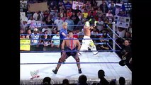 This match between **Rey Mysterio and Kurt Angle on the September 12, 2002 episode of WWE SmackDown! ** was a fast-paced, competitive singles bout that showcased Rey’s high-flying agility against Angle’s technical and power-based offense. The two men traded counters, headscissors, and explosive maneuvers throughout the match — Rey used his speed and springboard offense to keep Angle off balance, even hitting a corkscrew dive to the floor and a top-rope moonsault for near-falls — while Angle responded with German suplexes, backbreakers, and methodical control on the mat. Mysterio hit a 619 and nearly followed up with a West Coast Pop, but Angle ultimately regained control and finished the match by hitting a top-rope Olympic Slam for the pinfall victory. The bout, which featured crisp exchanges and frequent momentum shifts, was considered a strong TV match that highlighted the chemistry between the two competitors.