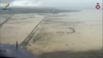 A man walked almost 40km in knee-high mud after his car became bogged in flood-hit Queensland. Video supplied by Life Flight via AAP