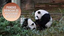 Pandas brincam de procurar biscoito