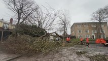 UK: Storm Chandra blows tree over in Durham, blocking road