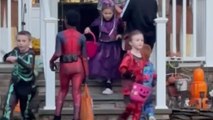 Little boy notices everyone celebrating Halloween and dashes inside a stranger's home