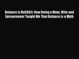 Read Balance is Bull$h!t: How Being a Mom Wife and Entrepreneur Taught Me That Balance is a