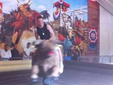 A gentle and intimate moment between a man and a young inflatable cow, going at it hammer and tongs accompanied by the dulcet tones of Aerosmith performing their hit single Dude (looks like a lady).