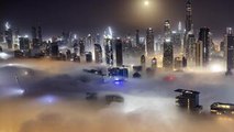 Soft clouds moved gracefully over the buildings, forming a serene and comforting scene that was truly pleasant to observe.