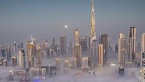 The visual captured clouds slowly drifting over buildings, creating a calm and soothing scene that was pleasing to watch.