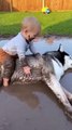 Adorable Baby and Dog #husky #dog #kingdomofawais