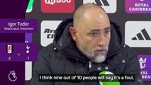 Igor Tudor was left fuming that Fulham's opening goal was allowed to stand in Tottenham's 2-1 defeat.