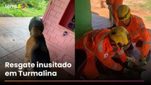 Cachorro é resgatado após ficar com a cabeça presa em leiteira em MG