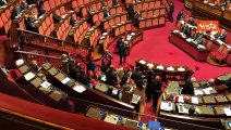 "No alla guerra", protesta M5s al Senato con cappellini in stile "Maga" come Donald Trump