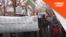 Wartawan, Seth Akmal bawakan perkembangan himpunan aman sambutan hari al-Quds sedunia 2026 di hadapan kedutaan Amerika Syarikat.