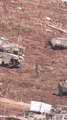 Israeli military gathers armored vehicles near the Israel-Lebanon border