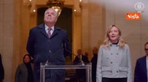 Pontida (Bg), 22 mar. (askanews) - E' arrivata anche la presidente del Consiglio Giorgia Meloni all'abbazia di San Giacomo a Pontida per i funerali di Umberto Bossi. La premier è stata accolta sul sagrato da Giancarlo Giorgetti, che da diverse ore accoglie tutti gli ospiti con i posti riservati, ed è stata salutata da diversi applausi e qualche "Vai Giorgia". Ma mentre entrava si sono fatti sentire anche i "nostalgici", con il coro "Secessione" e "Padania Libera", chissà se rivolto però al vice premier Matteo Salvini che in quel momento si affacciava sulla soglia della scalinata. "Padania libera" è stato scandito anche all'ingresso del presidente del Senato Ignazio La Russa.