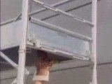 Montage d'un échafaudage au sommet d’un gratte ciel sans sécurité !