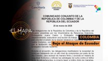 La tensión diplomática entre Ecuador y Colombia se intensificó tras un incidente fronterizo. Mientras Colombia denuncia el hecho, el gobierno ecuatoriano alega que solo es una estrategia para distraer a la opinión pública de la actual crisis comercial entre ambas naciones. Esta disputa, ha provocado pérdidas superiores a los 340 millones de dólares, puesto que las exportaciones colombianas hacia Ecuador cayeron un 69,3%, y las ecuatorianas hacia Colombia sufrieron un retroceso del 22,4%, en febrero de 2026.<br /><br />¿Legítima defensa o violación de poderío? Una caricatura de Telesur ilustra el debate sobre la soberanía en América Latina, criticando la injerencia de Estados Unidos en los asuntos internos de Ecuador y exponiendo las tensiones geopolíticas en la región.<br /><br />La Cancillería de Colombia en conjunto con la Cancillería de Ecuador firmaron, el día de ayer 25 de marzo de 2026, un acuerdo donde los puntos clave engloban el dialogo, la seguridad fronteriza, y el compromiso para normalizar el comercio bilateral. El acuerdo también contempla una cooperación estratégica donde impere el trabajo mutuo para mejorar de la relación entre estas dos naciones desde diversos sectores.<br /><br />Invitado:<br />Camilo Alzate - Periodista de la Revista Raya.<br /><br />"Esta estrategia de coartada es para apropiarse de las rentas que deja el narcotráfico… no hay guerra contra el narcotráfico, hay guerra contra la soberanía de las naciones".<br /><br />¡Dale like, comenta, comparte, suscríbete a nuestros canales y pulsa la campanita de notificaciones para que te enteres de todo el contenido que tenemos para ti!<br /><br />Únete a nuestro canal de teleSUR en WhatsApp<br />https://whatsapp.com/channel/0029VaCZ...<br /><br />O forma parte de nuestra comunidad también en WhatsApp<br />👇https://chat.whatsapp.com/IrRjc06uPUR...<br /><br />En el resto de las plataformas digitales estamos como:<br /><br />https://www.youtube.com/channel/UCqzuvMYiF4TJktrXCNEqJPA<br />💬 https://bit.ly/telesurweb<br />www.youtube.com/@telesuralacarta<br />✖ https://bit.ly/telesurenX<br />📹https://bit.ly/teleSURenYoutube<br />📷 https://bit.ly/telesurenInstagram<br />💟 https://bit.ly/telesurenFacebook<br />📣https://bit.ly/teleSURenTelegram<br />🎧https://bit.ly/telesurenPodcast<br />⏯https://bit.ly/teleSURenTikTok<br /><br />#TeleSUR #SiempreTeDaMás #ELOjodeAméricaEnElMundo