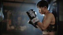Kongthoranee shows of his shadowboxing skills before his fight.