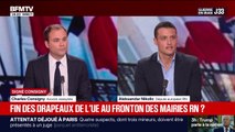Plusieurs édiles du parti de Jordan Bardella ont retiré l'étendard européen de la façade de leurs nouvelles mairies. Si Marine Le Pen soutient officiellement ce geste, il fait aussi grincer des dents en interne, renvoyant à la sortie de l'Union européenne un temps prôné par le Rassemblement national, désormais remisée au placard.