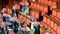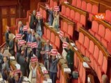 Dl sicurezza, opposizioni con cartelli in Aula Senato, 'Con Governo Meloni zero sicurezza'