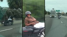 Un homme prend la vie cool sur sa Harley Davidson