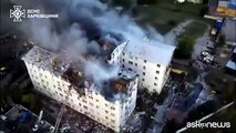 Ucraina, drone russo colpisce un edificio a Kharkiv: il momento dell'impatto