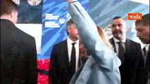 L'applauso per Giorgia Meloni all'arrivo a conferenza di Fratelli d'Italia a Pescara
