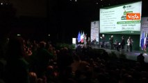 Standing ovation per Meloni all'assemblea della Cisl, Luigi Sbarra regala dei fiori alla premier