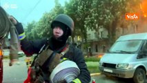 Kharkiv, edifici in fiamme dopo l'attacco missilistico russo