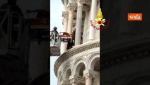 Uomo colto da un malore sulla Torre di Pisa, le immagini dei soccorsi dei Vigili del Fuoco